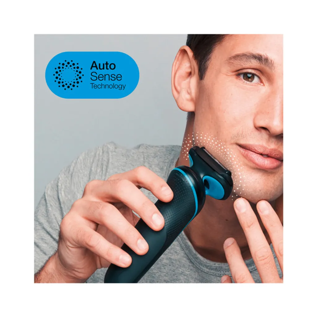 Mit der AutoSense-Technologie misst der Rasierer die Bartdichte und passt die Motorleistung so an, dass bei jedem Zug möglichs viele Haare entfernt werden.