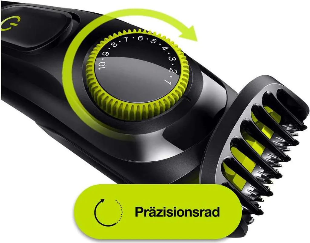 Ein Kammaufsatz und das Präzisionsrad bieten 20 Längeneinstellungen von 1 bis 10 mm für jeden gewünschten Bart- und Haarstyle.