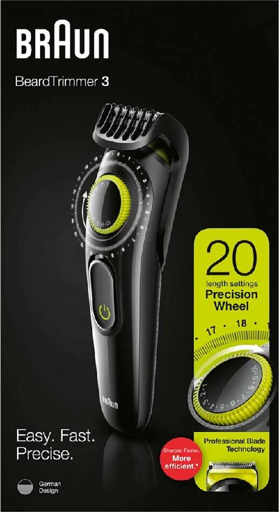 BRAUN Bartschneider BT3221 Hersteller: BRAUN Bezeichnung: Bartschneider BeardTrimmer Typ: BT3221 Ausführung: Bartstylinggerät Grundfarbe: schwarz Spannung: 100..240 VBRAUN Bartschneider BT3221: weitere DetailsPräzisionsrad für 20 Längeneinstellungen, Barttrimmer und Haarschneider Geliefert wird: Procter&Gamble Braun Bartschneider BeardTrimmer BT3221, Verpackungseinheit: 1 Stück, EAN: 4210201281092
