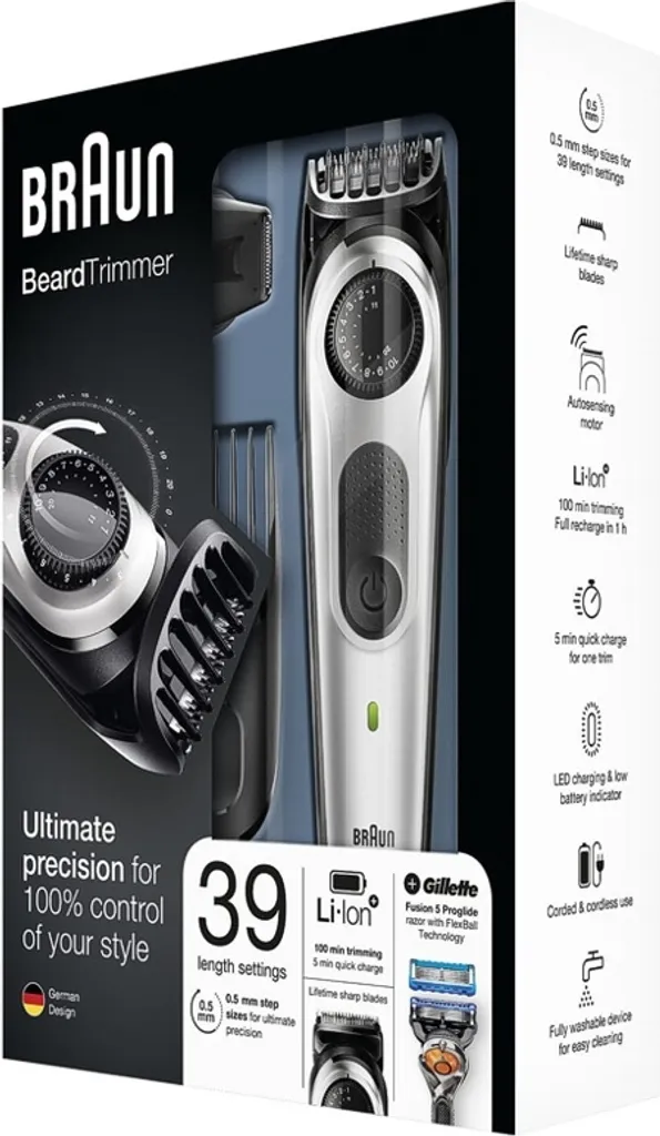- Braun BT5060 Beard Trimmer and Hair Clipper, Detail Trimmer Attachment, Sharp Blades, Free Gillette Fusion5 ProGlide Razor with Flexball Technology, Black/Silver