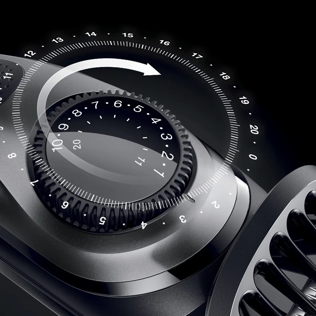 - Der AutoSensing-Motor sorgt für eine konstante Trimmleistung bei dichten und langen Bärten