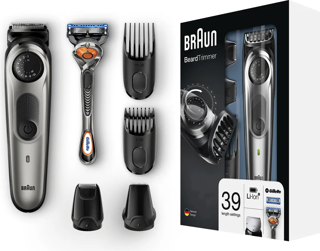 Probieren Sie verschiedene Bartstyles mit dem neuen wiederaufladbaren Braun Barttrimmer BT7020 für Männer mit Edelstahl-Trimmerkopf. 39 Längeneinstellungen und lebenslang scharfe Klingen sorgen mit ultimativer Präzision für einen gleichmäßigen Schnitt. Der AutoSensing-Motor sorgt für eine konstante Trimmleistung bei dichten und langen Bärten. Mit Lithiumbatterien für eine 150 % längere Akkulaufzeit im Vergleich zum Vorgängermodell BT3040. Vollständig abwaschbarer Barttrimmer/Haarschneider für Männer. Anwendung mit oder ohne Kabel für maximale Flexibilität.
