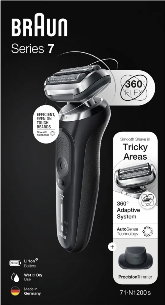 Braun Series 7 Elektrorasierer für Herren mit 360°-Anpassung für eine gründliche Rasur. Mit AutoSense-Technologie, die die Dichte Ihres Bartes erkennt und die Motorleistung anpasst, um mit jeder Rasur noch mehr Haare zu entfernen.