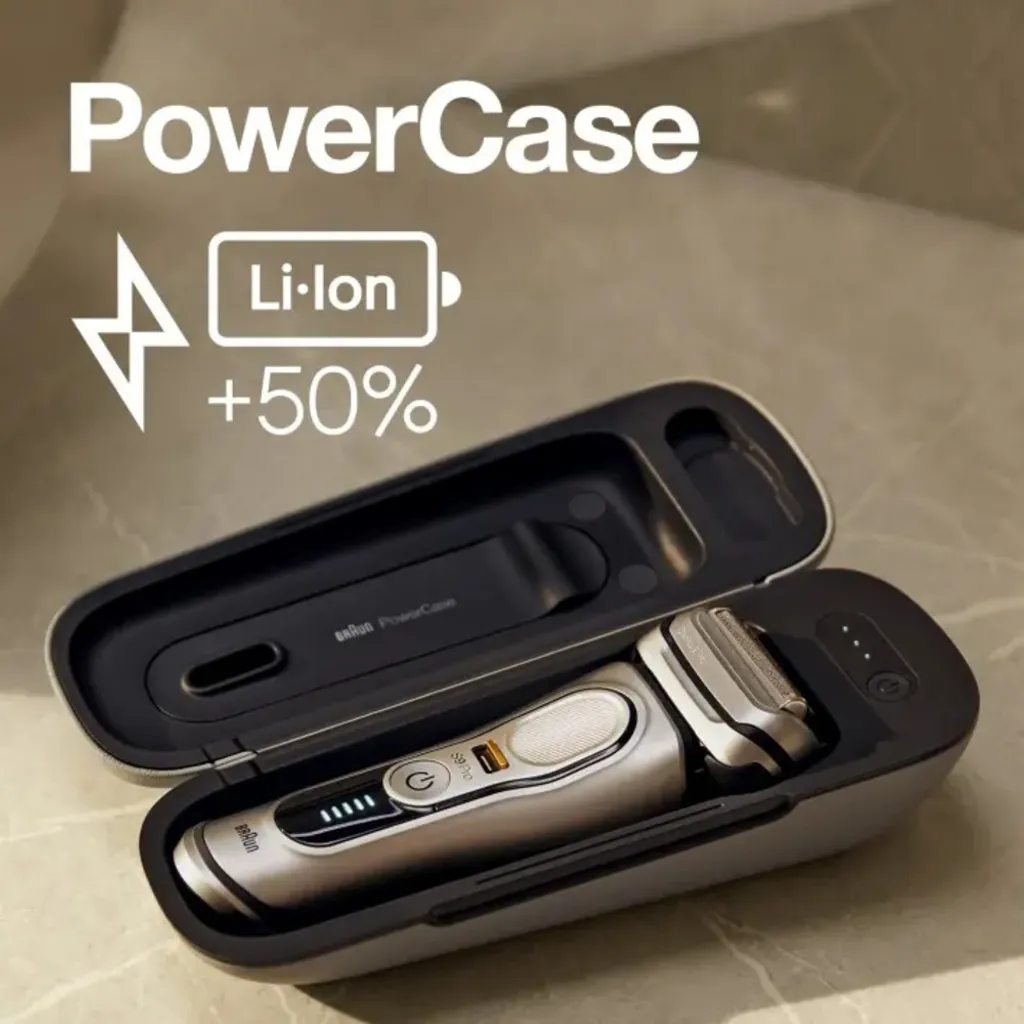 - Akkubetrieb, mit PowerCase (tragbares Rasierer-Ladeetui)