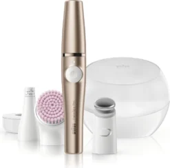 Das Braun FaceSpa Pro ist das weltweit erste 3-in-1 Epiliergerät für Gesichtshärchen mit Reinigungs- und Massagefunktion. Entfernen Sie Gesichtshärchen sanft an der Wurzel mit dem Epilieraufsatz für langanhaltend glatte Haut. Die sensible Gesichtsreinigungsbürste befreit empfindliche Haut sanft von Unreinheiten. Der MicroVibrations-Kopf sorgt zusammen mit Ihrer Lotion oder Creme für eine glattere Haut (effizienteres Auftragen Ihres Hautpflegeproduktes im Vergleich zu manuellem Auftragen). Diese Premium Edition enthält ein elegantes Aufbewahrungs-Etui für die verschiedenen Geräteköpfe und Bürsten.