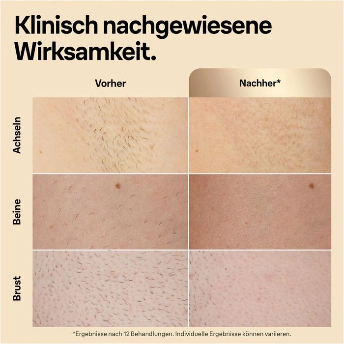 Anwendungsbereich: Achseln, Beine, Bikinizone, Gesicht, Körper