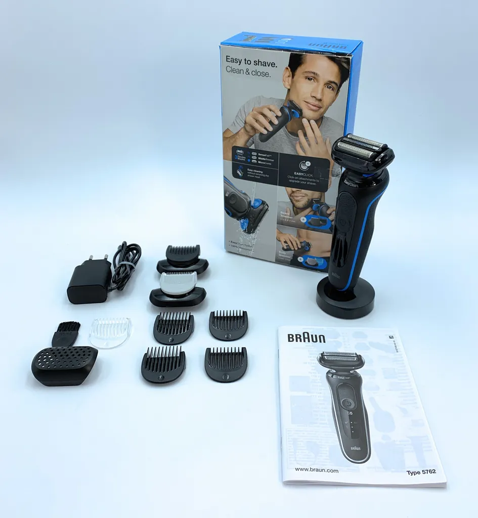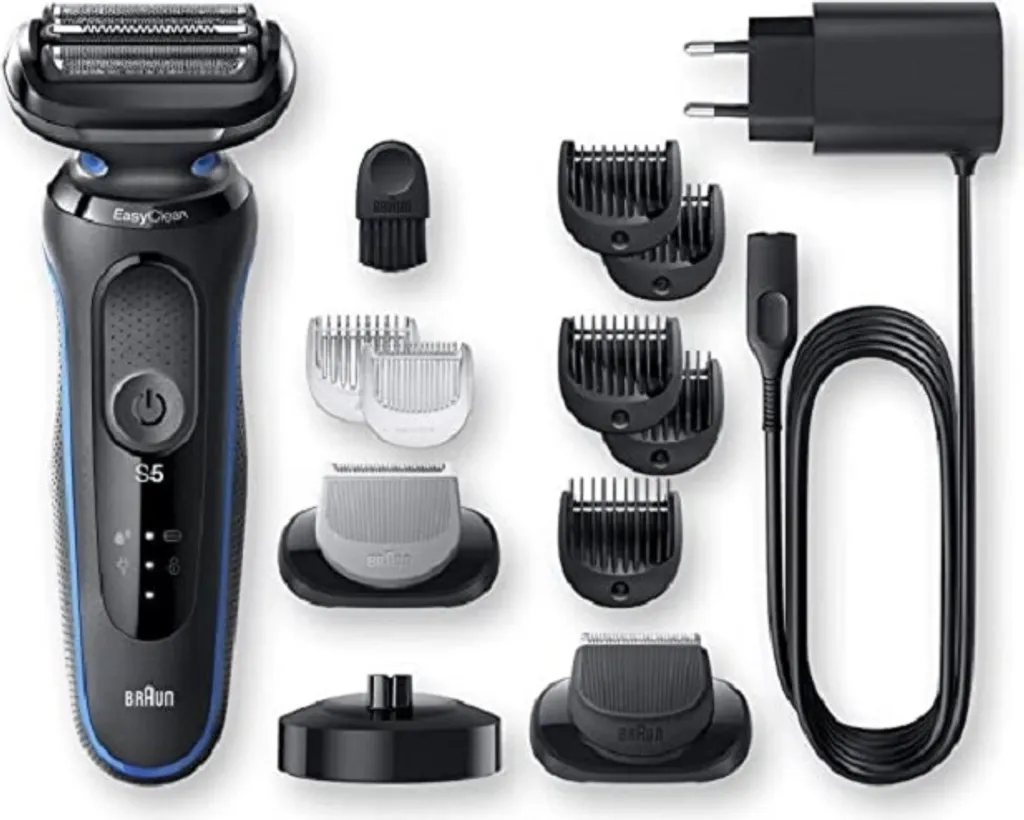 Braun Series 5cs Rasierer Herren, Einfache Rasur & Reinigung, Barttrimmer, Bodygroomer, Ladestation, Wet&Dry, 50 Min. Laufzeit, Elektrorasierer mit 3 flexiblen Klingen, EasyClick Funktion, blau