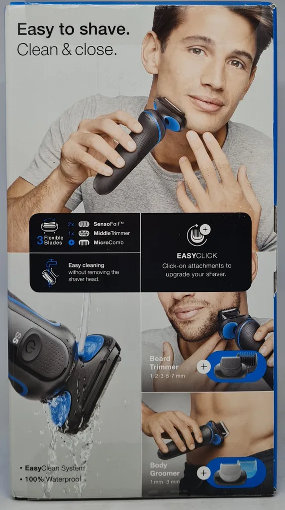 - Das EasyClean-System ermöglicht eine schnelle und einfache Reinigung, ohne den Rasierkopf zu entfernen