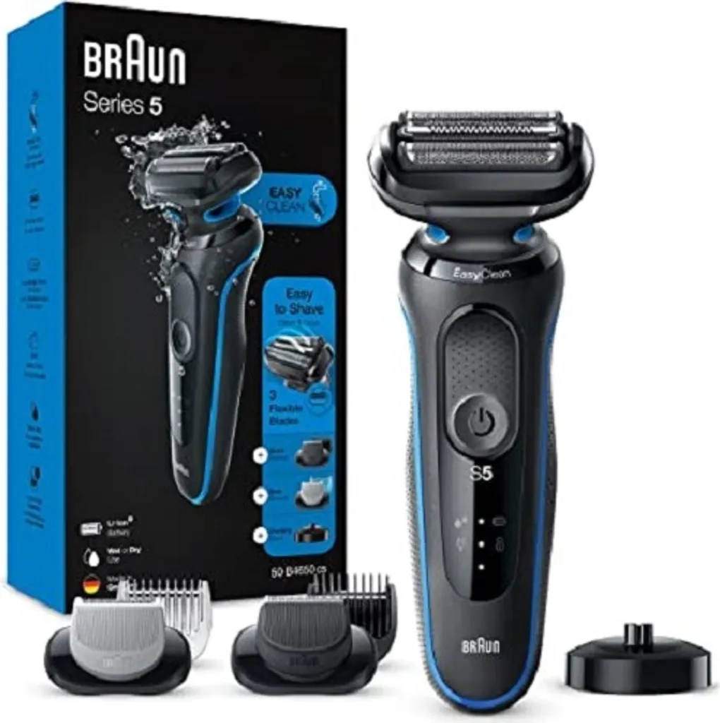 Der Braun Series 5 Elektrorasierer für Herren für eine einfache Rasur mit 3 flexiblen Klingen, die sich an Ihre Gesichtskonturen anpassen.