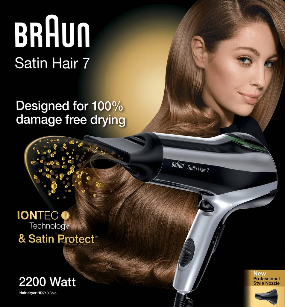 - Der Satin Hair 7 Haartrockner/Föhn mit einzigartigem IONTEC wurde speziell entwickelt, um Austrocknung und Schädigung der Haare zu vermeiden. Im Vergleich zu Geräten ohne IONTEC verbessert er sogar den Feuchtigkeitsgehalt Ihres Haares während des Trocknens