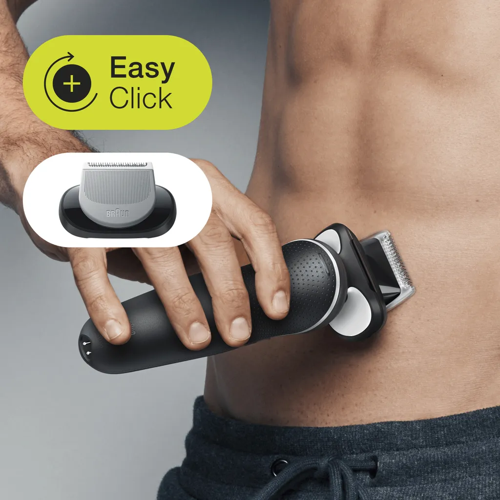 - EasyClick: Umrüstbar zum Bodygroomer dank EasyClick. Aufsatz im Pack enthalten. Das EasyClick System ermöglicht eine einfache Umrüstung Ihres Rasierers für noch mehr Funktionen