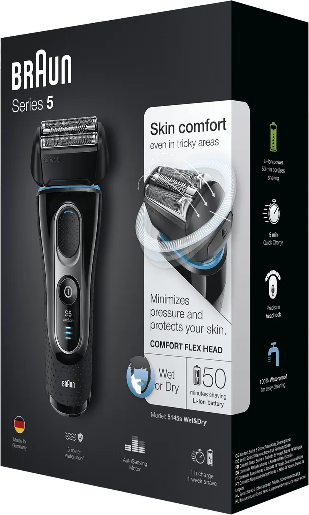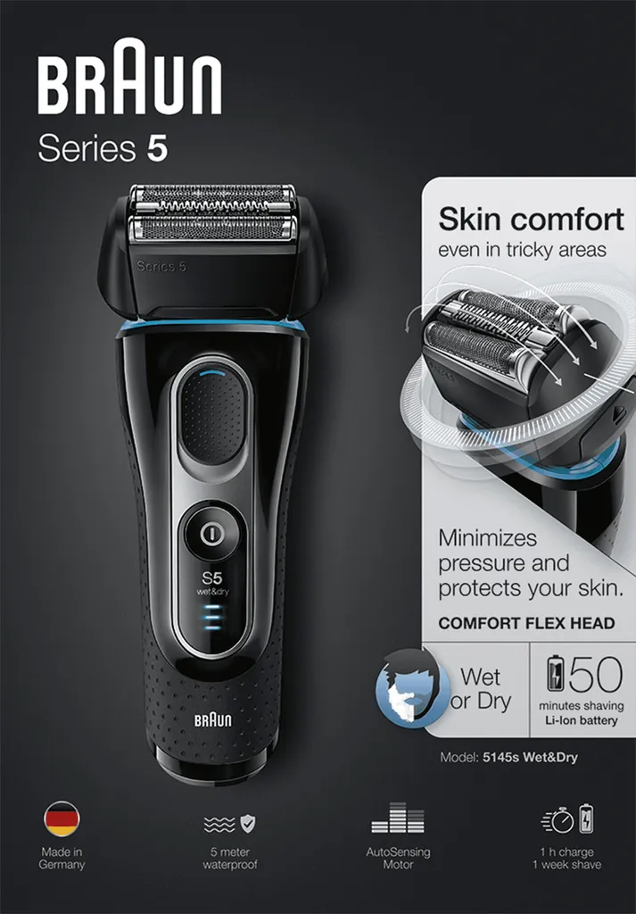 Der Braun Series 5 elektrische Rasierer/ Rasierapparat sorgt für Effizienz bei jedem Zug. Für eine perfekte Rasur selbst bei dichten Bärten und an schwer zu erreichenden Bereichen. Der zu 100 % wasserdichte Elektrorasierer bietet bis zu 7 Jahre lang maximale Leistung für großartigen Hautkomfort.
