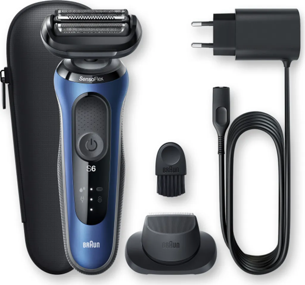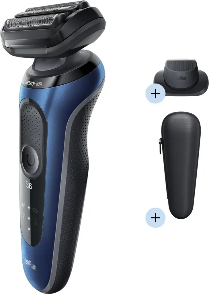 - Im Lieferumfang enthalten: 1x Series 6 Rasierer für Herren – blau, 1x EasyClick Aufsatz: Präzisionstrimmer-Aufsatz, 1x Reise-Etui, 1x Netzteil mit automatischer Anpassung an 100 V bis 240 V, 1x Reinigungsbürste