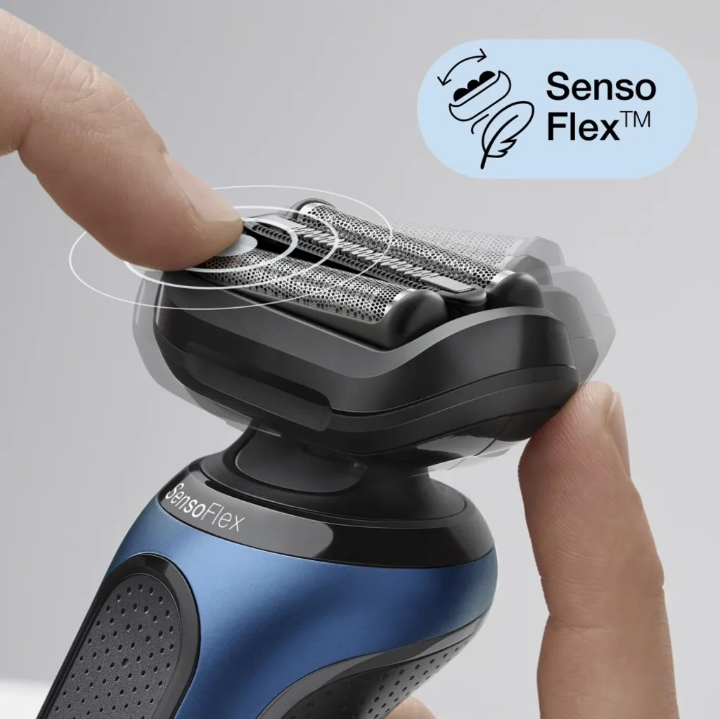 • Rasierer mit SensoFlex: getesteter Moving Head, der sich anpasst, um den Druck auf die Haut bei empfindlicher Haut zu minimieren