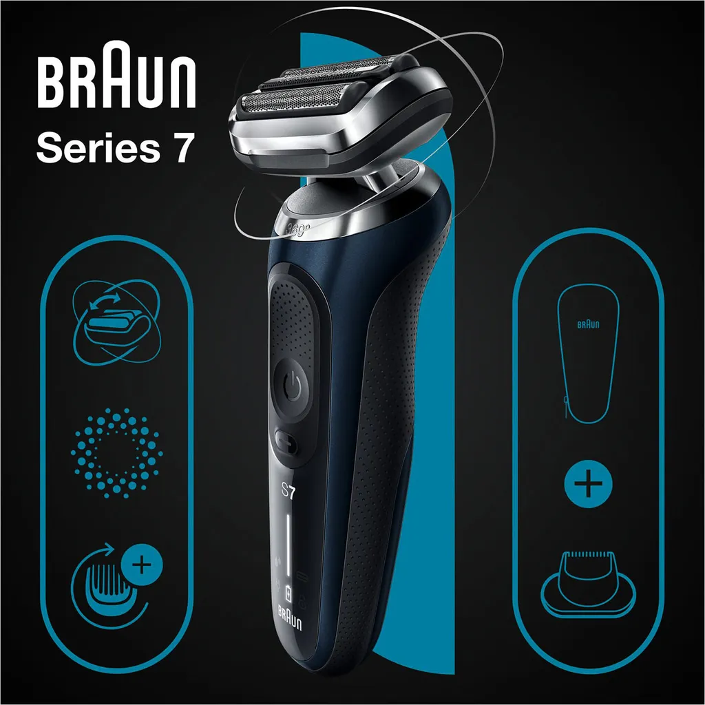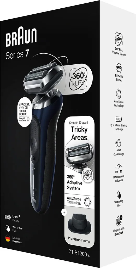 Braun Series 7 Elektrorasierer für Herren sorgt für eine glatte Rasur dank 360°-Anpassung. Die Bartdichte wird erkannt und die Motorleistung durch die AutoSense-Technologie angepasst, um mit jedem Zug noch mehr Haare zu entfernen.