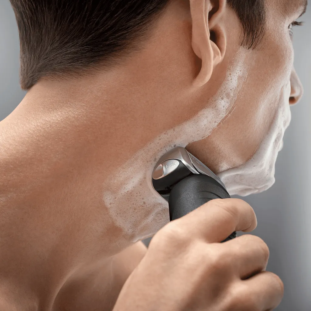 - Der hautfreundliche Präzisionstrimmer des Rasierers hilft dabei, mühelos schwierige Stellen zu rasieren, wie unter der Nase oder an den Koteletten