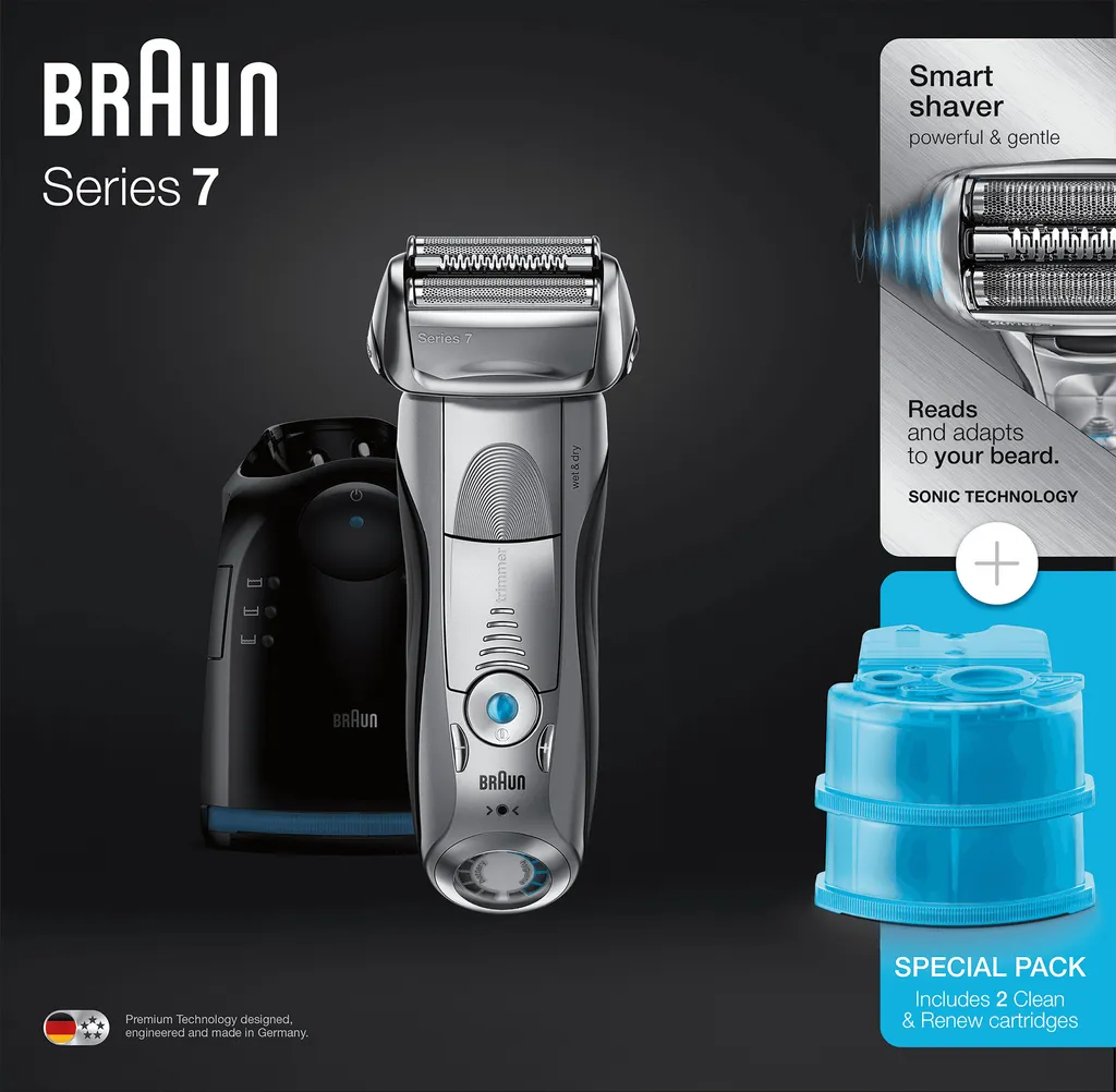 - Der Braun Series 7 ist ein zu 100 % wasserdichter, smarter elektrischer Rasierer für eine gründliche und sanfte Rasur – in Deutschland entwickelt