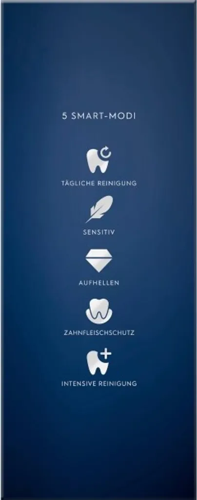 - 5 Putzprogramme, Tägliche Reinigung, Sensitiv, Zahnfleischschutz, Intensive Reinigung, Aufhellen