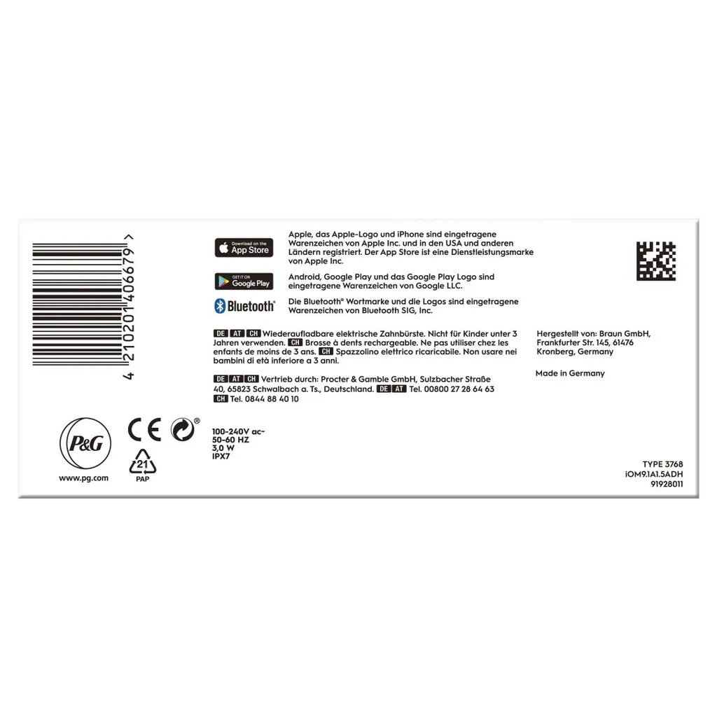 Ausstattung: App-Steuerung (Bluetooth), Ladekontrollleuchte, Ladezustandsanzeige, Andruckkontrolle, Aufbewahrungsmöglichkeit für 2 Aufsteckbürsten
