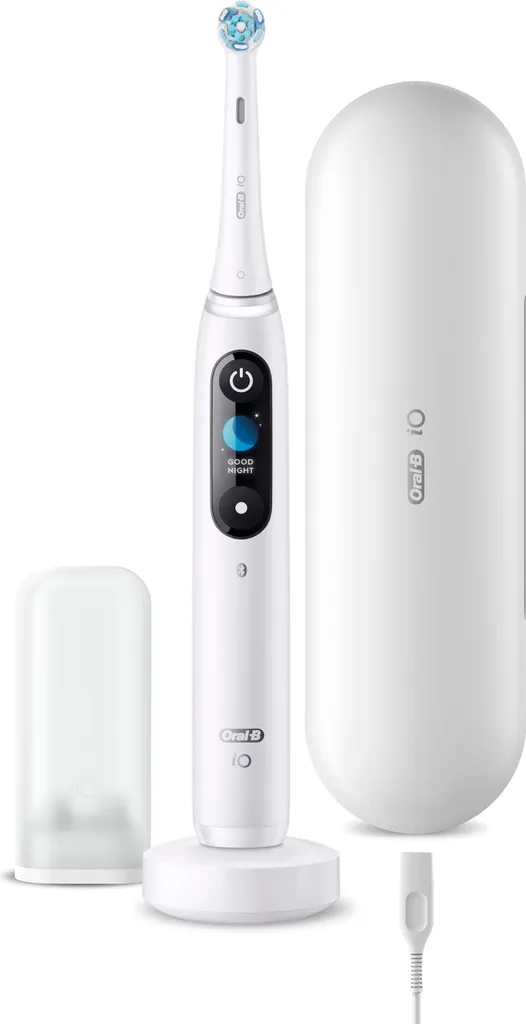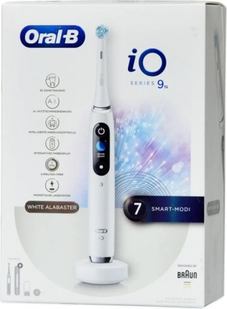 - Lieferumfang: iO 9 elektrische Zahnbürste mit Aufsteckbürste Ultimative Reinigung, Premium Lade-Reise-Etui, magnetische Ladestation, Mini-Etui für Aufsteckbürsten