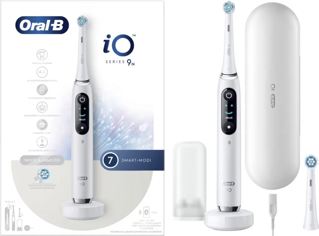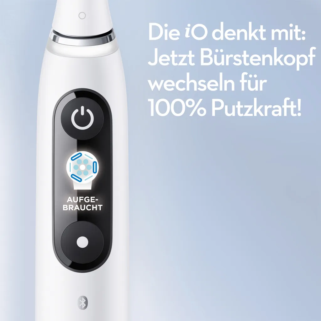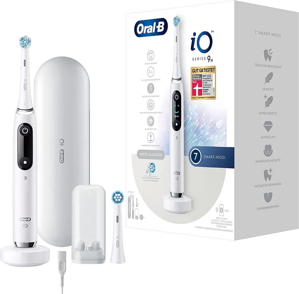 Die beste Reinigung von Oral-B mit revolutionärer magnetischer iO-Technologie für ein professionelles, sauberes Gefühl und ein sanftes Putzerlebnis, kombiniert den einzigartigen runden Bürstenkopf von Oral-B mit sanften Mikrovibrationen für ein frisches, sauberes Mundgefühl und 100 % gesünderes Zahnfleisch in einer Woche ggü. einer Handzahnbürste, 3D Zahn-Tracking mit künstlicher Intelligenz, um Ihr Putzverhalten auf der Außenseite, Innenseite und Kaufläche zu verfolgen – für eine optimale Reinigung, mit dem interaktiven Farbdisplay können Sie zwischen den Putzprogrammen wählen und werden an den Bürstenkopfwechsel erinnert – es begrüßt Sie beim Einschalten und schenkt Ihnen ein Lächeln für gute Putzleistung, 7 Putzprogramme für ein persönliches Putzerlebnis: Tägliche Reinigung, Sensitiv, Zahnfleischschutz, Intensive Reinigung, Aufhellen, Super Sensitiv, Zungenreinigung, die intelligente Andruckkontrolle leuchtet bei zu viel Druck rot, bei zu wenig Druck weiß und zeigt mit grünem Licht an, wenn Sie den optimalen Druck verwenden, schnell & elegant aufladen ¿ zuhause & unterwegs: Mit dem Lade-Reiseetui und der magnetischen Ladestation für eine schnelle Aufladung in ca. 3 Stunden, Lieferumfang: 1 Handstück, 2 Aufsteckbürsten, 1 Lade-Reiseetui, 1 magnetische Ladestation, 1 Mini-Etui für Aufsteckbürsten