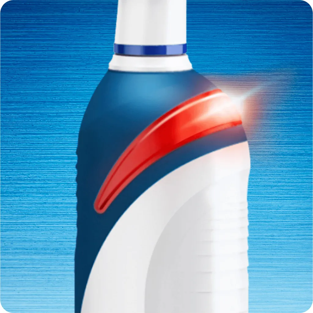 Während Sie einfach nur die Zahnbürste im Mund bewegen, erledigt der einzigartige runde Bürstenkopf von Oral-B den Rest für Sie. Er entfernt bis zu 100 % mehr Plaque als eine herkömmliche Handzahnbürste, sorgt so für gesünderes Zahnfleisch und hellt Ihr Lächeln ab dem ersten Tag der Anwendung durch Entfernen von Oberflächenverfärbungen auf.