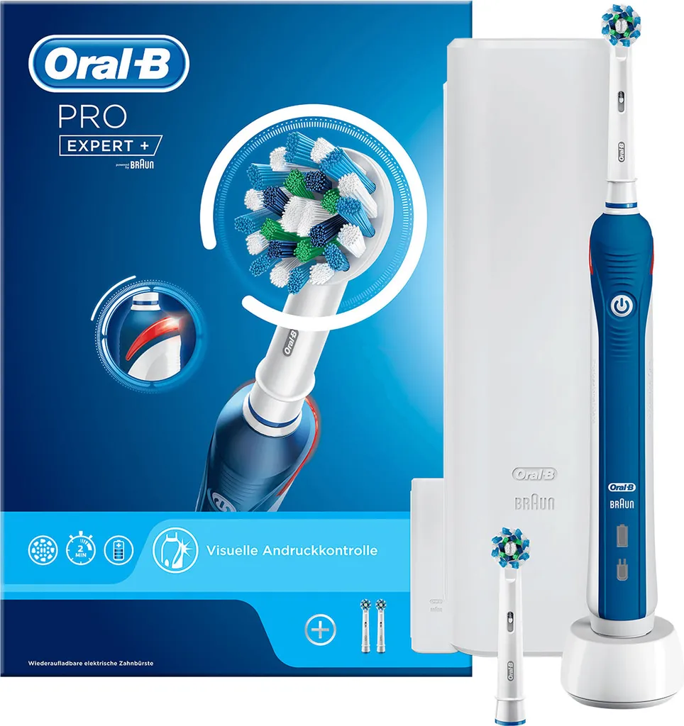 Oral-B Pro Expert+ Slim Zahnbürste (Andruck-Kontrolle, Timer, Reise-Etui, Cross-Action)