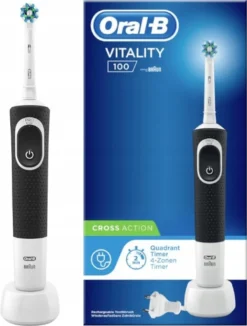 Oral-B Vitality 100 Schwarz Elektrische Zahnbürste + 4 Ersatzspitzen + Schwarzes Etui