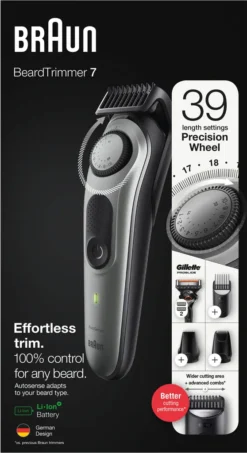 Braun Barttrimmer 7 BT7320, Barttrimmer Und Haarschneider Für Herren, Für Gesichts- Und Kopfhaare
